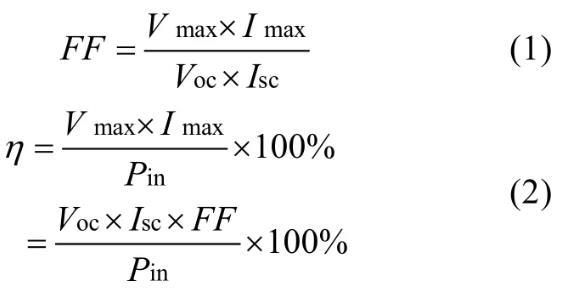 其中Vmax和Imax為最大輸出功率時對應的電壓和電流,Pin為入射光強。