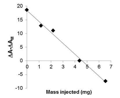 圖 6. 相對(duì)面積隨注射脂質(zhì)體質(zhì)量的變化 進(jìn)入亞相。 線性回歸是通過(guò) R2 為 0.992 獲得的。