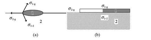 圖1油/水界面處各界面張力及液/液鋪展示意圖