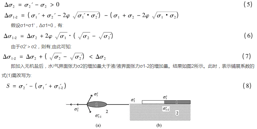 圖2無機鹽對各界面張力影響及液/液鋪展示意圖