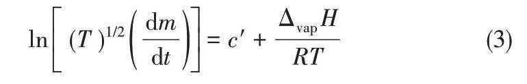將ln[(T)1/2(dm/dt)]對(duì)1/T作圖,通過直線的斜率求出ILs的汽化焓ΔvapH。
