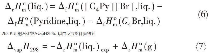 這些數(shù)據(jù)與Kabo等[40]使用Knudsen滲出法獲得的數(shù)據(jù)非常一致,但低于Santos等[43]使用微量熱法測量的蒸發(fā)熱。總而言之,他們認(rèn)為離子液體以離子對(duì)的形式蒸發(fā),而汽化熱主要取決于液相和氣相離子對(duì)之間的庫侖相互作用。