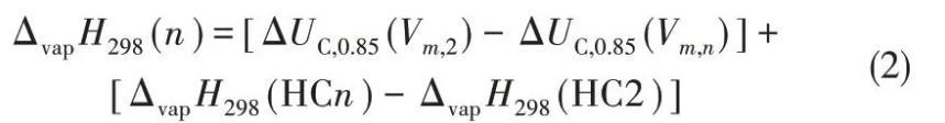 綜合考慮庫侖力和范德華作用力,經(jīng)過一系列復(fù)雜的推導(dǎo),得到了[Cnmim][Tf2N]汽化焓ΔvapH298的計(jì)算公式