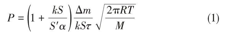 式中,Δm是經(jīng)過一段時(shí)間τ后的質(zhì)量損失;S是孔的面積;k是透射系數(shù);M是蒸氣的摩爾質(zhì)量;S'是液體的表面積(假定等于電池的橫截面積);α是汽化系數(shù),通常情況下,液體的α=1。