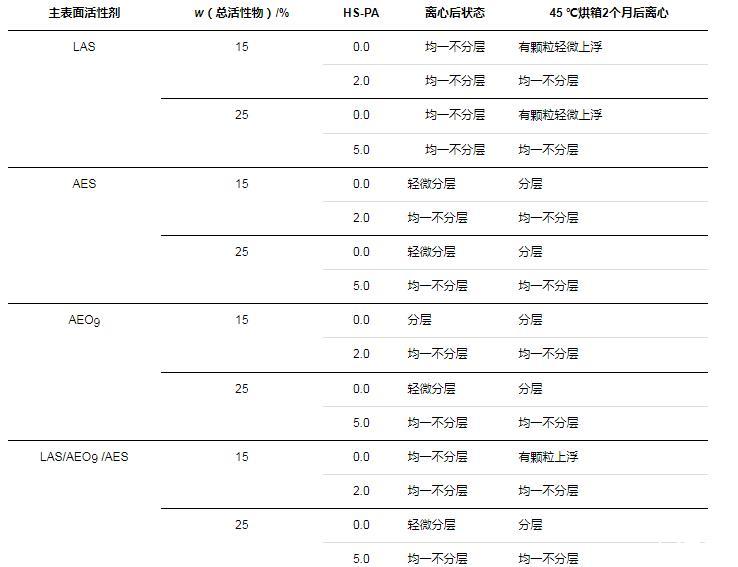 2.3 HS-PA在非結(jié)構(gòu)型洗滌劑中的應用