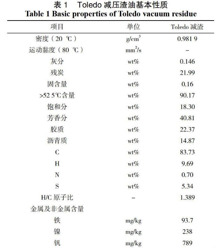 對于懸浮床反應器的研發(fā)來說,油品的物性模型需要在與傳統(tǒng)研究中更高溫度以及更高壓力的苛刻條件下建立,這樣就造成了傳統(tǒng)研究中所涉及基本模型不一定正確的后果。準確模型的建立任重而道遠,相關(guān)模型的建立還需要更多實驗、理論的探索和研究。本文將以極具代表性的Toledo減渣作為樣本,進行其在懸浮床加氫工藝條件下的界面張力以及黏溫關(guān)系曲線的近似模擬和計算。下面表一為Toledo減壓渣油的基本性質(zhì)如表1。