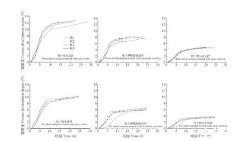 為了探究水中表面活性劑和有機(jī)化合物的加入對土壤裂隙發(fā)育的影響,本文通過在水中加入少量乙醇或肥皂(表面活性劑)來改變水的表面張力,對干濕循環(huán)條件下不同氣—液界面張力的土壤收縮開裂特性展開研究,對比分析了不同表面張力下土壤裂隙的發(fā)展演化過程,最后對其機(jī)理進(jìn)行了探討。