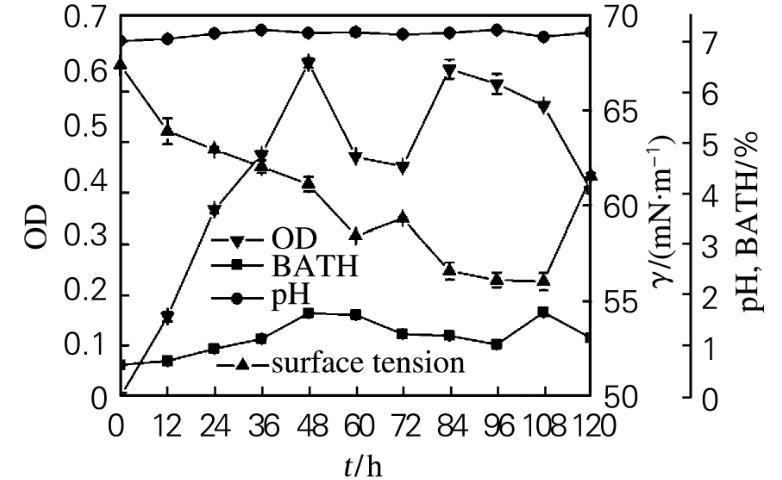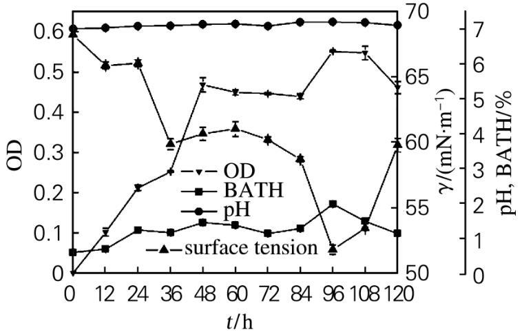 2.3生物表面活性劑產(chǎn)生菌的生長(zhǎng)特性