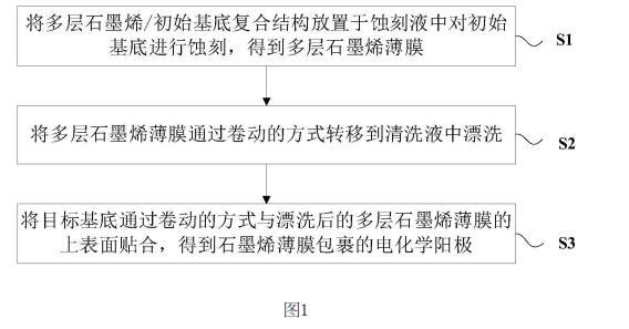 本實(shí)施例提供了一種基于石墨烯薄膜包裹的電化學(xué)陽極大規(guī)模制備方法,如圖1所示,包括以下步驟: