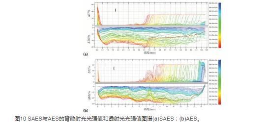 圖10 SAES與AES的背散射光光強(qiáng)值和透射光光強(qiáng)值圖譜(a)SAES;(b)AES。
