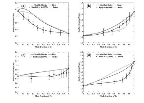 基于Butler模型對(duì)表相的偏摩爾過剩吉布斯自由能進(jìn)行修正以生成二元合金體系的表面張力模型;