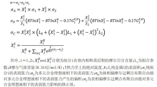 在一些實(shí)施方式中,二元合金表面張力模型為: