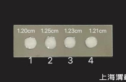 將制備好的塔塔粉配置為50%的水溶液,使用移液槍取100微升,在垂直高度2cm的條件下使液滴自然下落,測量液滴直徑,判斷其表面張力大小。