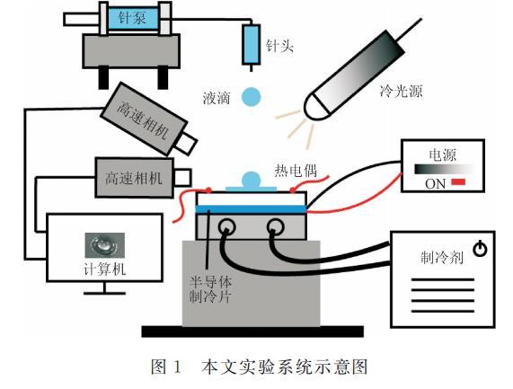 盡管如此,目前針對低表面張力液滴沖擊過冷水平壁面的研究仍有所欠缺。液滴在過冷表面上的沖擊和應(yīng)用在生活中也十分常見,例如噴霧凍結(jié)、高空中的過冷水滴沖擊機(jī)翼導(dǎo)致結(jié)冰、過冷噴涂等。本文針對乙醇液滴沖擊過冷親水水平壁面這一基本物理現(xiàn)象開展實驗,針對其鋪展動力學(xué)行為進(jìn)行分析與討論,旨在探究低表面張力對液滴沖擊過冷水平壁面的鋪展動力學(xué)行為的影響。這一研究有助于加深對固液接觸現(xiàn)象的理解,為更好的控制固液介面接觸提供有效指導(dǎo)。