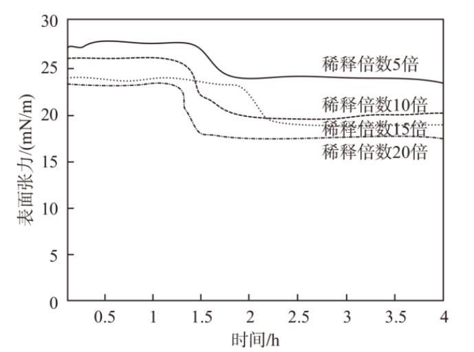 圖4不同稀釋倍數(shù)下表面張力測(cè)試結(jié)果對(duì)比