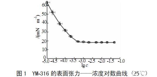 測得YM-316的表面張力隨濃度對數的變化曲線,如圖1所示。