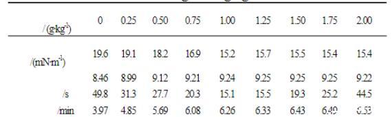 > 不同濃度下甘草酸溶液界面張力的變化