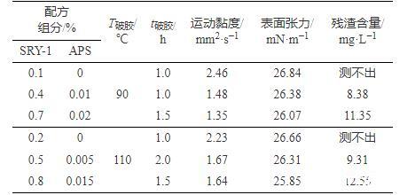 表6壓裂液破膠液基礎(chǔ)數(shù)據(jù)統(tǒng)計(jì)