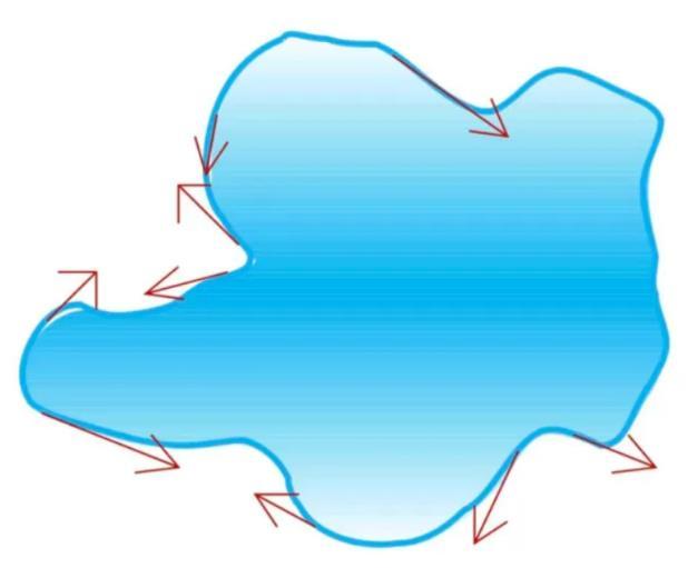 為了更直觀地理解液體表面張力,我們可以通過受力分析圖來描述液體表面分子的受力情況。