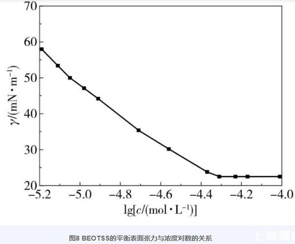 圖8 BEOTSS的平衡表面張力與濃度對數(shù)的關(guān)系