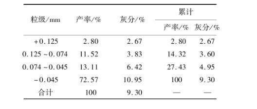 試驗采用山東能源新礦集團內蒙古能源中心選煤廠浮選精煤,經充分混合晾干后,密封保存待用。煤質分析見表1。由表1可知,樣品灰分較低,僅為9.35%。元素分析中氧含量為10.75%,主要來自煤中的無機礦物質和煤表面的一些含氧基團,煤中的無機礦物質和含氧基團與水能夠形成較強的氫鍵作用,使煤樣顯現出親水性,且水分不易排出。
