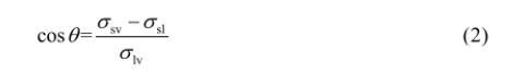 潤(rùn)濕三相線交匯處的固-液界面張力(σsl)、液-氣界面張力(σlv)及固-氣界面張力(σsv)可決定潤(rùn)濕性的好壞,當(dāng)潤(rùn)濕過(guò)程達(dá)到平衡時(shí)即可得到Y(jié)oung’s方程。
