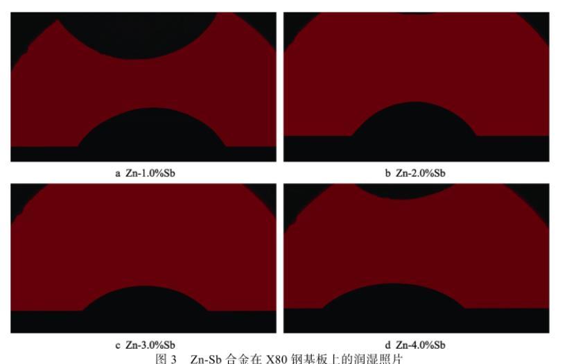 2.2 Zn-Sb/X80鋼體系的潤(rùn)濕性分析