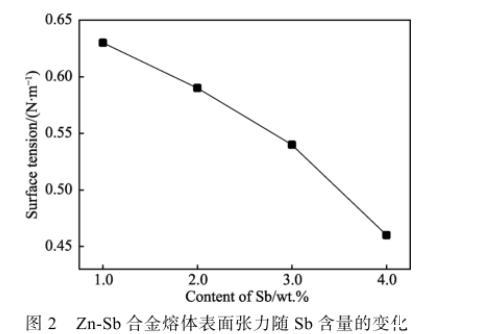 2.1 Sb對(duì)鋅液表面張力的影響
