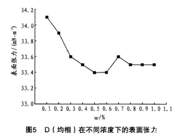 0.5%(w)D(均相)加入不同濃度氟表面活性劑后表/界面張力見圖6。