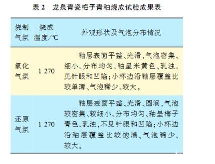 表2 龍泉青瓷梅子青釉燒成試驗成果表
