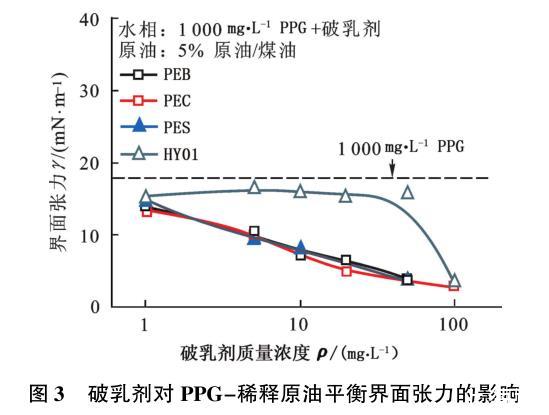 2.1破乳劑對(duì)PPG-稀釋原油界面張力的影響