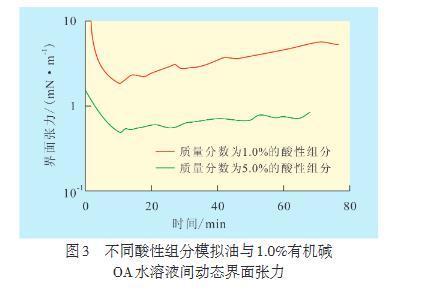 2.3有機堿OA水溶液與酸性組分模擬油間動態界面張力