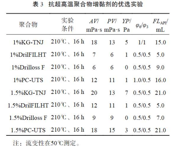 表3抗超高溫聚合物增黏劑的優選實驗