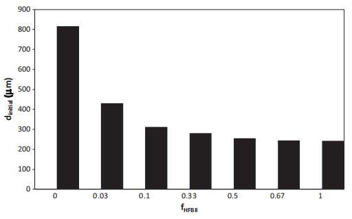 圖8給出了以與圖3相同的HFBII:WPI比率制備的兩種泡沫的初始?xì)馀莩叽纭W钪匾挠^察結(jié)果是,少量HFBII(來自fHFBII 0.03)在很大程度上影響泡沫的初始?xì)馀莩叽纭4送猓坪鯊腤PI主導(dǎo)向HFBII主導(dǎo)的行為轉(zhuǎn)變發(fā)生在fHFBII~=0.2,對(duì)應(yīng)于朗繆爾槽中吸附層中觀察到的轉(zhuǎn)變(圖6)。