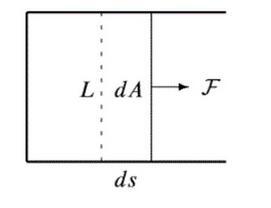 現(xiàn)在,將這個(gè)“活塞”向外拉出單位長(zhǎng)度ds時(shí)改變表面積dA=L·ds,則所用的力F=dW/ds=α·L,那么單位長(zhǎng)度的金屬絲受力就有F/L=α。也就是說,表面張力就等于表面能量密度。從單位來看,定義的表面張力的單位是F/m,表面能量密度α的單位是J/㎡,兩者也相等。