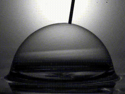 對于這個現象,低粘度液體與高粘度液體有著全然不同的表現。在純水等低粘度的液體中,氣泡在幾毫秒內就會迅速破裂。對于這類液體中的氣泡破裂,科學家早已有了清晰的認識:表面張力和慣性控制了該過程。