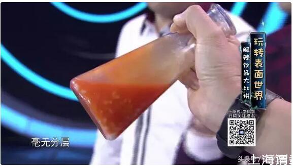 最終,在將辣椒油分別倒入三種飲料里之后發(fā)現(xiàn),只有米湯可以完美的和辣椒油相融,完全沒有分層現(xiàn)象!