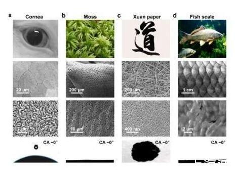 圖2.自然界中的超鋪展表面