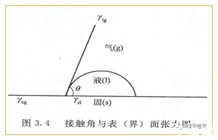 該式稱為Young方程或潤(rùn)濕方程。θ越小,潤(rùn)濕過(guò)程越易進(jìn)行。習(xí)慣上,θ>90℃,為不潤(rùn)濕,θ<90℃,為潤(rùn)濕。