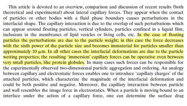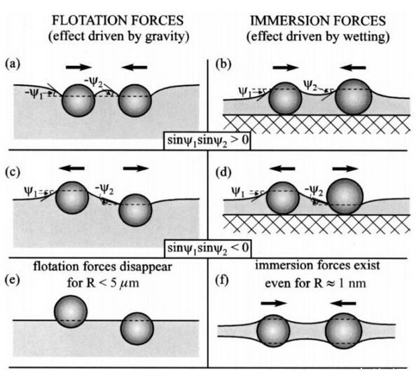 這里寫的也比較清楚,漂浮顆粒之間的毛細作用由重力引起,其他的情況則是由顆粒的浸潤性導(dǎo)致。如果有人還有疑問的話,歡迎留言討論。