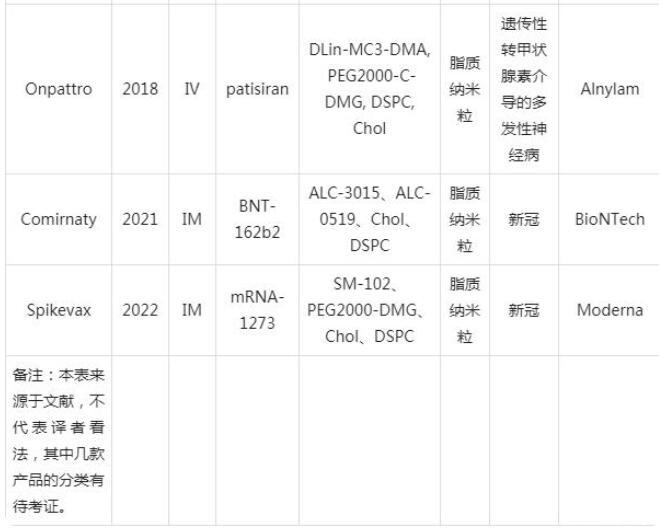 表2臨床試驗中的脂質納米粒mRNA藥物和疫苗