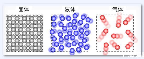 下圖對比了固體、液體和氣體的分子排列示意圖,可以看出來,固體分子排列緊密且有序,分子之間被分子力牢牢控制而難以發生隨意的運動。液體分子則不會保持固定的形狀,但它們仍然致密排列,就像游樂場里的海洋球,因此,液體的分子之間仍具有一定的分子力,而這也是液體粘性的主要來源。