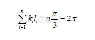 假設(shè)二維干泡沫中的任一氣泡如圖3b所示,氣泡的邊數(shù)為n,從a點開始,再回到a的邊長分別標記為l1到ln,每邊所對應(yīng)的曲率為k1到kn(Plateau第一定律)。現(xiàn)在假設(shè)有一點從a點沿著邊向b運動,到b點時,所走的路徑為l1,轉(zhuǎn)動的角度為這條邊所對應(yīng)的圓心角(向外為正,向內(nèi)為負值),為k1*l1。此時要想繼續(xù)沿著邊運動,需要向內(nèi)轉(zhuǎn)動π/3角度(根據(jù)Plateau第二定律),如圖3b所示。轉(zhuǎn)動后繼續(xù)運動,直到到達原來的點a。此過程,n條邊總共在頂點處轉(zhuǎn)動的角度為nπ/3,在邊上轉(zhuǎn)動的角度為