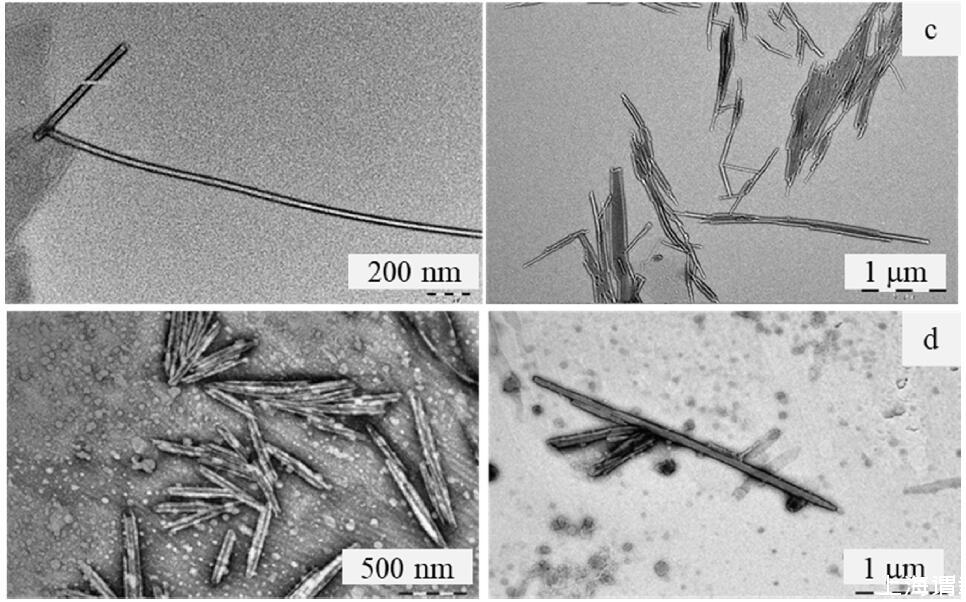 圖3所示。在5 × CMC下,SCAG (a)、SCAA (b)、SCAS (c)和SCOS (d)水溶液中的團聚體的TEM顯微照片。