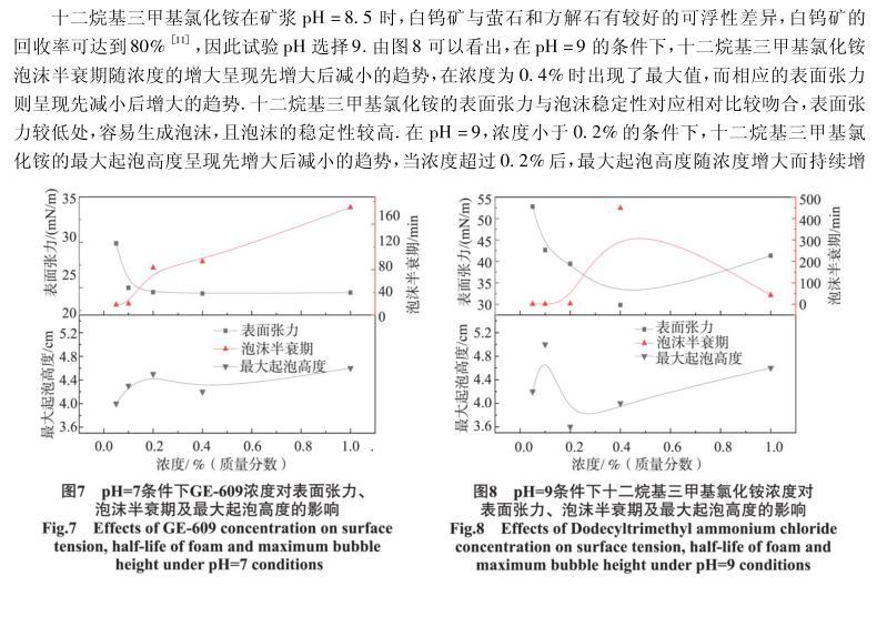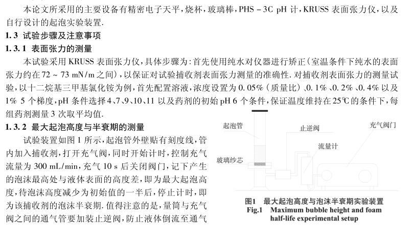 四種陽離子捕收劑的起泡性能與表面張力研究