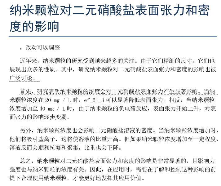 > 納米顆粒對(duì)二元硝酸鹽表面張力和密度的影響